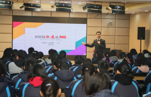 12月3日下午,第四检察部主任丁磊检察官“变身”兼职法治副校长,前往上海市民星中学为该校送去一堂以“和校园欺凌说 no!”为主题的法治课。