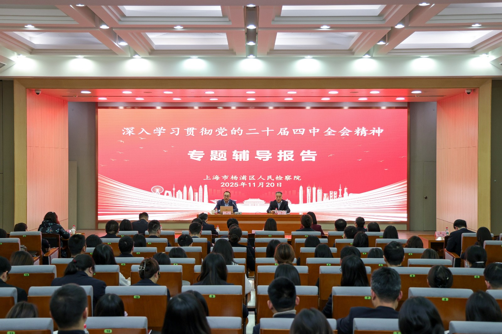 为深入学习贯彻党的二十届四中全会精神,近日,杨浦区检察院召开党组理论学习中心组(扩大)学习会。院党组书记、检察长康强主持会议并讲话,全体干警参加会议。辅导报告后,杨浦区检察院党组理论学习中心组成员开展研讨交流,深学细悟《习近平谈治国理政》(第五卷)。