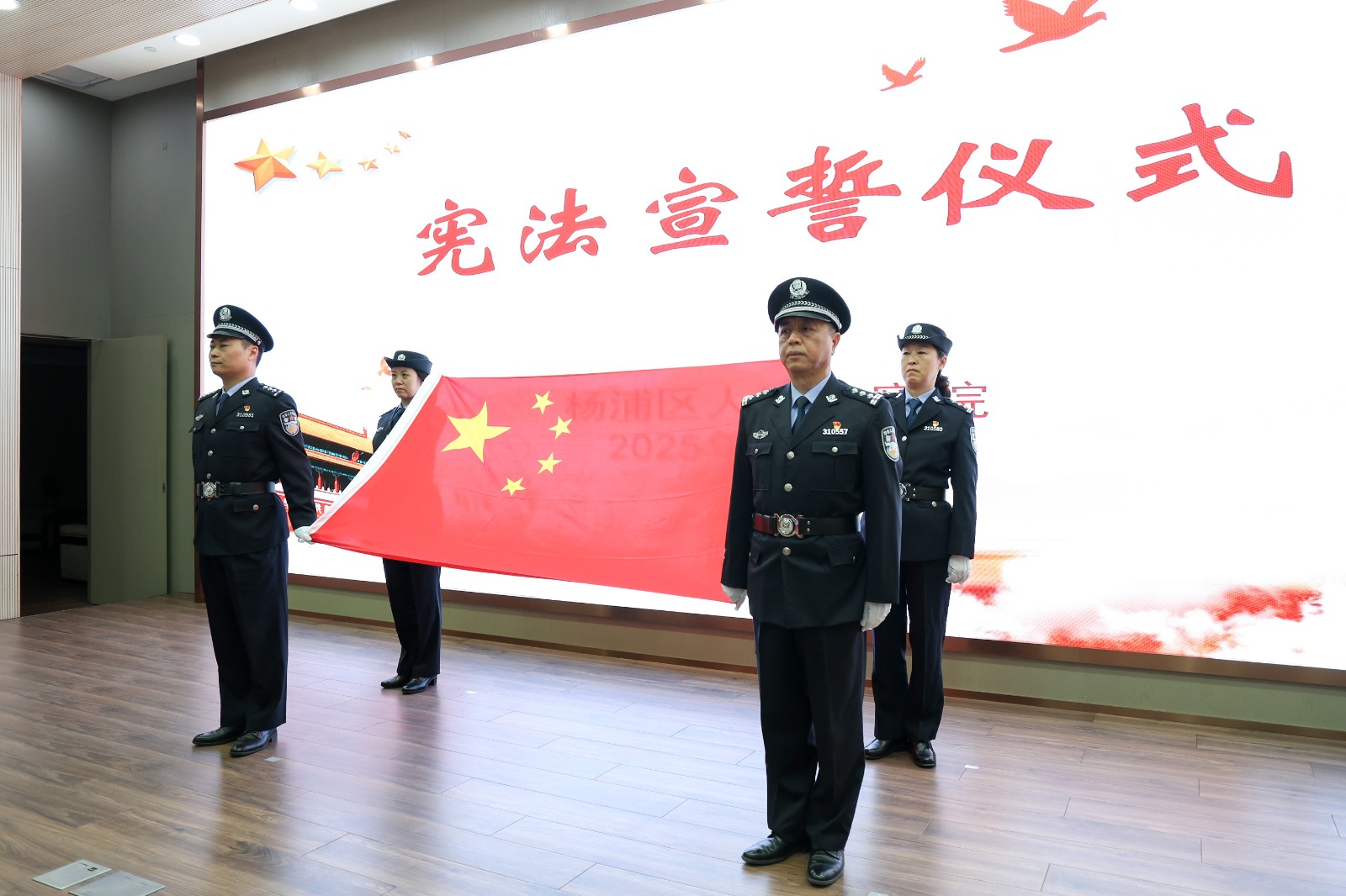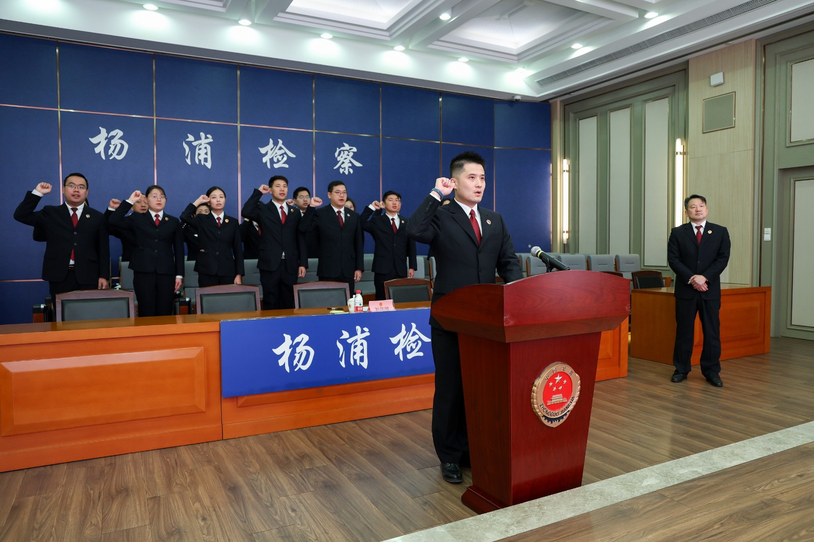 月4日,杨浦区检察院举行宪法宣誓仪式,党组成员、副检察长刘华敏监誓,2025年晋升检察官等级人员、新入额检察官、职级晋升人员和新进院公务员参加宣誓。