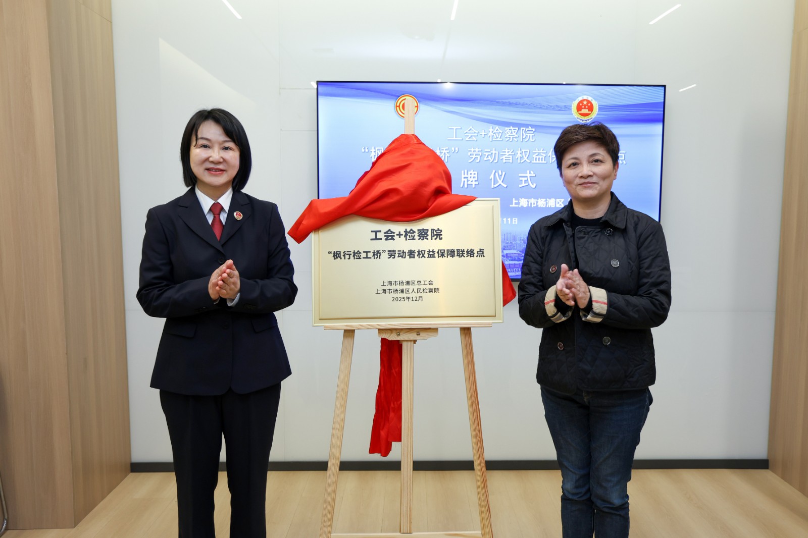 为深入践行司法为民根本宗旨,持续推动加强民生司法保障专项工作走深走实,12月11日,杨浦区检察院与杨浦区总工会召开深化协作保障劳动者合法权益工作机制签约会。区总工会党组成员、副主席杨洁,区检察院党组成员、副检察长周蕴露出席,区总工会权益保障部及区检察院第五检察部相关负责人等参加。活动中,双方会签《关于深化协作保障劳动者合法权益的工作机制》(以下简称《工作机制》),并为工会+检察院“枫行检工桥”劳动者权益保障联络点揭牌。