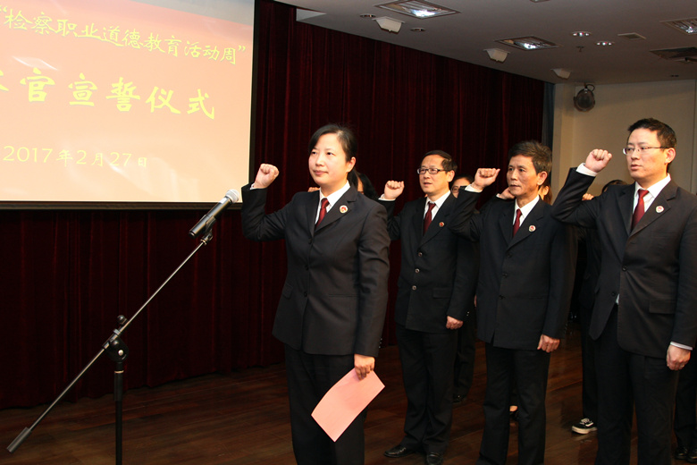 为进一步学习贯彻党的十八大和十八届三中、四中、五中、六中全会精神,巩固“两学一做”成果,秉持“从严治党、从严治检”的思想,深化“忠诚、为民、担当、公正、清廉”的检察官职业道德基本准则,上海市杨浦区检察院以“增强忧患意识,争创两个‘一流’”为主题,开展“检察职业道德教育周”活动。
