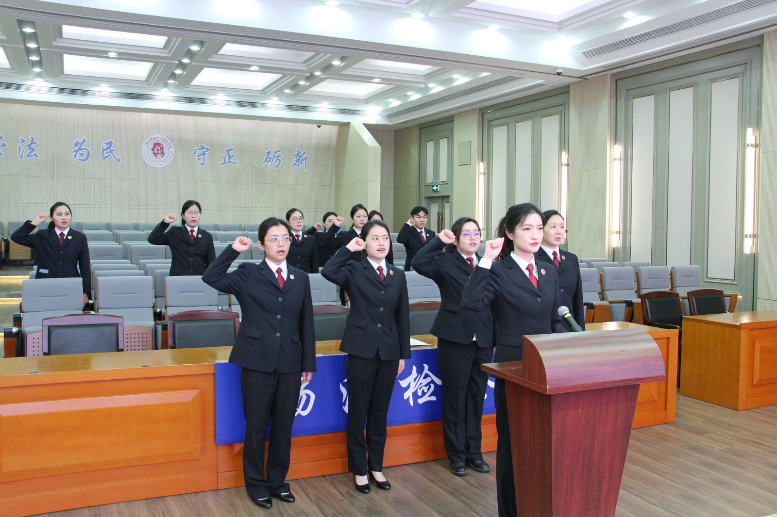 月4日,我院举行宪法宣誓仪式,院党组成员、副检察长刘华敏监誓,院党组成员、政治部主任林慜主持,第二检察部主任龚雯蓉领誓,2023年新入额检察官、新任命中层干部、新任命见习主任和新进院公务员参加。